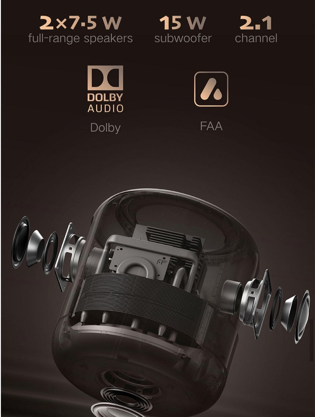 Sound Speaker built-in Full frequency 7.5W*2+15W woofer Dolby/DTS