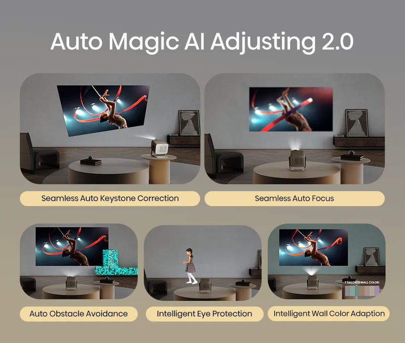 The M2 Pro adapts to your environment and makes setup easy with automatic and seamless correction for focus, keystone, screen fit, and obstacle avoidance. Additionally, it includes self-adaptive wall color correction to get the best color reproduction, even when projecting on a non-white surface.