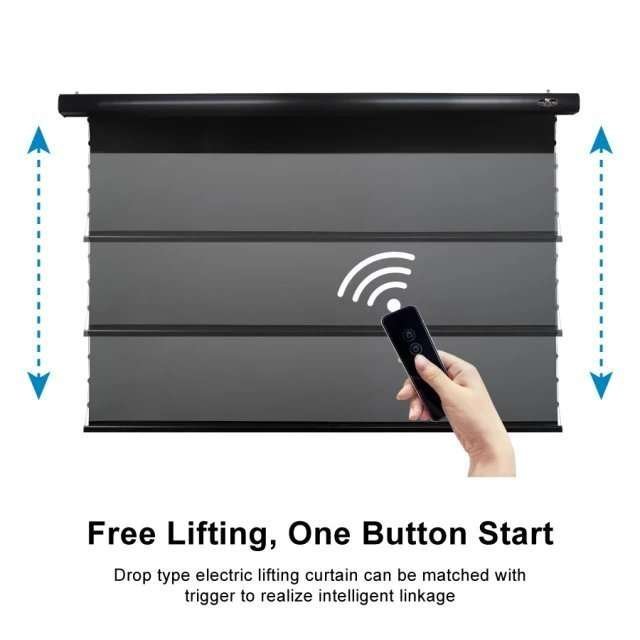 - Fast easy to Set UP & Space-saving Design – Plug in the power cord to achieve the installation in 1 minute! ; No screws necessary;Change any indoor viewing place with your mood! Electric Pop-up/Floor Rising series projector screen is a collection of premium retractable electric screens that VIVIDSTORM Unique Wire Tension Technology. Flatness like glass surface. and extend upward from the floor. when the screen is not used, just close it which makes it unobtrusive;