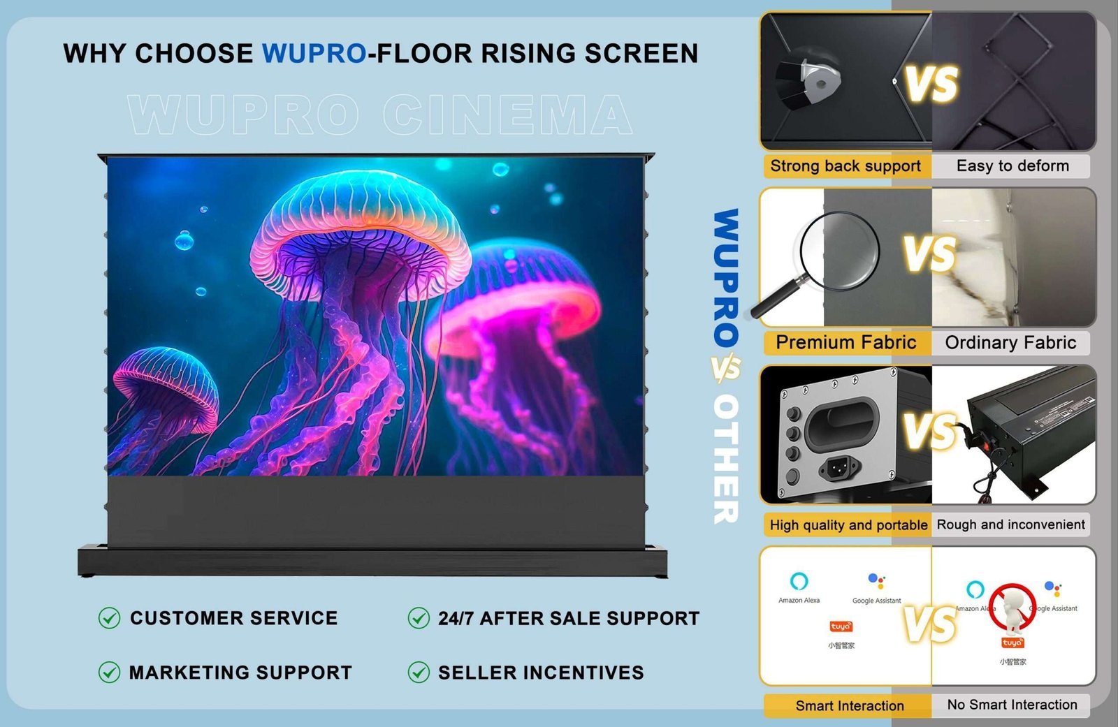 Wupro Floor rising ALR Grey Crystal Screen For Normal Projector 100 -120″