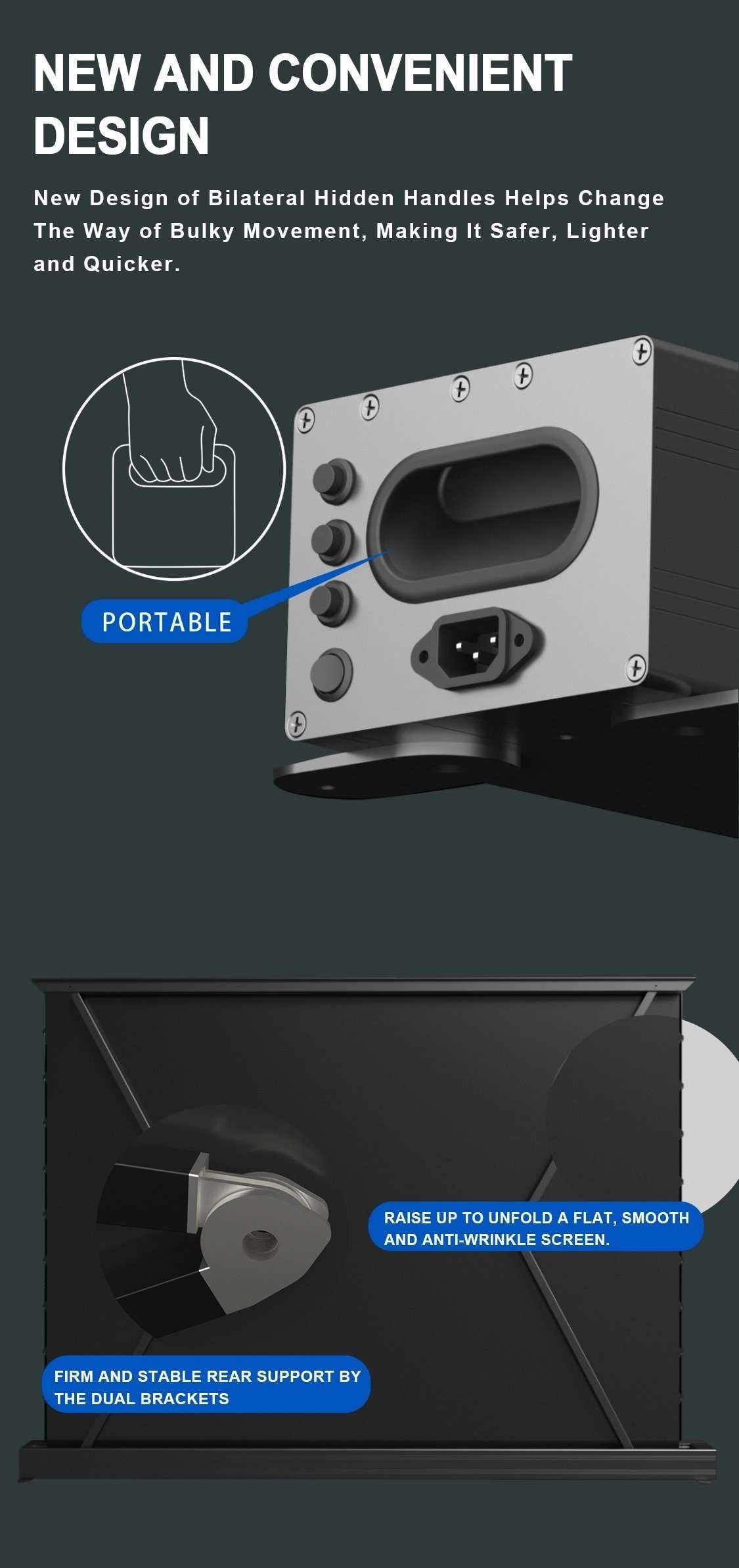 Model Name | 100” -120 ” Floor Rising gray crystal long throw Projection Screen |